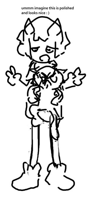 - i first make a sloppy sketch just to figure the design out. on that sketch, i'm willing to do up to 10 revisions when it comes to the character/outfit and 5 revisions when it comes to the colors for free.